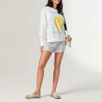 Amiblvowa Oversized Graphic Sweatshirt for Women Y2k Long Sleeve Drop Shoulder Crewneck Shirt Tops People Dupes Pullover Vintage Star Print Side Slit Sweater Jackets Fall Winter Clothes Yellow White