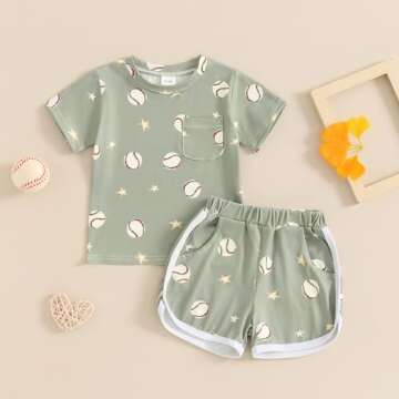 Show more Step up your little one’s style this summer with the Amiblvowa Toddler Baby Boy Girl Baseball Outfits. Designed with playful charm and utmost comfort in mind, this adorable two-piece set features a stylish short-sleeve letter baseball t-shirt and matching baseball print shorts. Crafted from a premium blend of 95% cotton and 5% polyester, this outfit is not only soft and breathable but also elastic for easy movement. Perfectly tailored for toddlers aged 2-3 years, the cheerful colors and adorable designs ensure your baby stands out whether they're at the park, on vacation, or just playing at home.