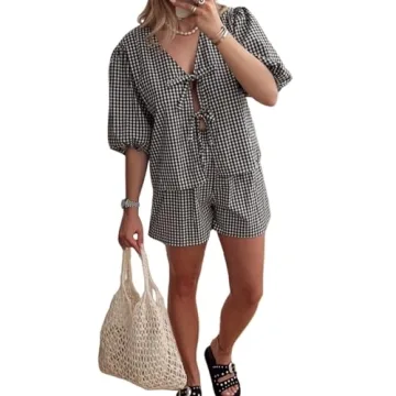This pajama set combines practicality and charm, making it a perfect clothing choice for any discerning woman. Its striped plaid and gingham patterns are reminiscent of the Y2K aesthetic, bringing a fun nostalgic twist to your loungewear collection. Whether you’re relaxing at home, hosting a get-together, or heading out for a casual date, this versatile pajama outfit is your go-to choice for staying fashionable and comfortable.