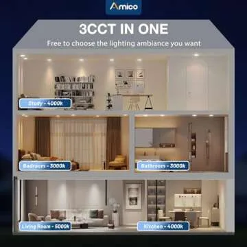 Show more The 3 CCT Led Recessed Lighting by Amico is a revolutionary lighting solution that combines innovation with functionality. These 6-inch lights come equipped with three selectable color temperatures – 3000K, 4000K, and 5000K – allowing users to customize their lighting according to their mood or the time of day. Say goodbye to the hassle of returning or exchanging products due to inappropriate color temperature; this versatile lighting system puts you in control of your ambiance.