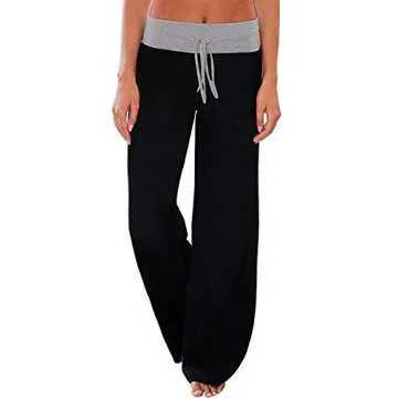 AMiERY Women's Comfy Casual Pajamas Pant Floral Printed High Waist Wide Legs Lounge Pants Trousers