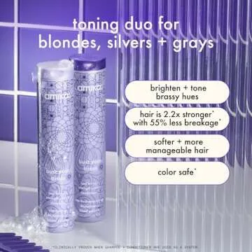 Show moreIntroducing the Amika Bust Your Brass Cool Blonde Strength Repair Conditioner, your ultimate solution for beautifully vibrant blonde hair. Designed to combat unwanted brassiness and enhance your color, this luxurious conditioner features a proprietary blend of ingredients that intensely hydrates, strengthens, and adds a sleek shine to each strand. Enriched with bond-caring properties, it not only improves the overall health of your hair but also prevents future breakage, making it an essential addition to your hair care routine. The sleek 275ml bottle is not just a visual delight; it's packed with strength-boosting capabilities that ensure your blonde stays bright and healthy.