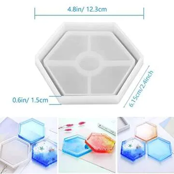 AMind4U Resin Molds Silicone Kit 6PCS Coaster Resin Molds Hexagon Square Circle Heart Epoxy Resin Molds for Beginingers (Hexagon)