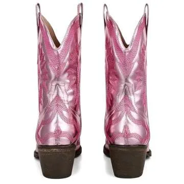 AMINUGAL Pink Cowgirl Boots - Embroidered Chunky Heel Cowboy Boots for Women