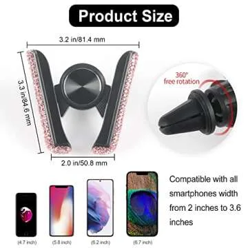 Show moreIntroducing the Amiss Bling Cell Phone Holder, an exquisite blend of functionality and fashion that will elevate your driving experience. This universal car phone mount is designed to fit all smartphones ranging from 2 inches to 3.6 inches in width, making it an essential accessory for every car owner. Crafted from premium materials, including environmental ABS rubber, soft clay, and dazzling crystal rhinestones, this phone holder ensures both durability and style. The playful yet sophisticated pink hue infused with sparkling rhinestones adds a touch of glamour to your car interior, making it not just a tool, but an elegant statement piece.