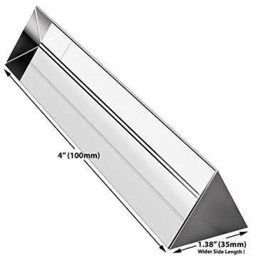 Show moreUnleash the wonders of light and inspire the next generation of scientists with the Amlong Crystal 4 inch Optical Glass Equilateral Prism. Crafted from high-quality optic glass, this prism stands out for its durability and crystal-clear clarity, allowing for a spectacular demonstration of light's spectrum. With a side length of 1.38 inches (35mm), it's designed for stability, making it easy to handle for both children and adults. This prism not only serves as an educational tool but also opens the door to creative photography experiments where capturing the beauty of light is an art.