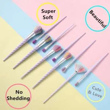 Show moreWelcome to the magical world of beauty with the Ammiy Unicorn Makeup Brushes Set. This enchanting collection features 10 beautifully crafted brushes designed not just for functionality but to be a statement piece in every makeup enthusiast's kit. Each brush in this set is adorned with colorful bristles that not only capture attention but are crafted from high-quality nylon hair, ensuring they are soft against your skin and perfect for blending powders flawlessly. The unique unicorn horn-shaped handles in a delicate pearly lilac shade not only add to the aesthetic but provide a comfortable grip, making your makeup routine a truly delightful experience. From contouring to blending, this brush set covers every makeup application need, catering to both beginners and seasoned enthusiasts alike.