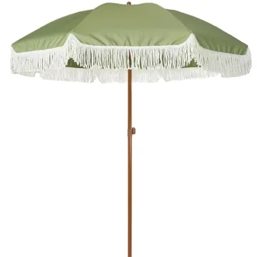 Show moreIntroducing the AMMSUN 7ft Patio Umbrella with Fringe, a stunning addition that beautifully combines style, durability, and practicality for your outdoor oasis. This elegant umbrella, featuring a chic tassel design, is crafted for those who cherish a unique aesthetic without sacrificing functionality. With a generous canopy of 7 feet in diameter, this piece offers ample coverage, providing a comfortable escape from the harsh summer sun while transforming your patio or garden into a sophisticated retreat.