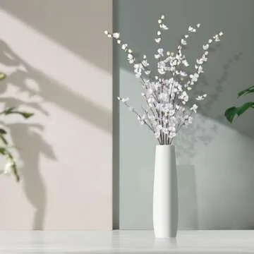 Ammyoo Artificial Faux Plants Flowers Indoor Spring Summer Decor, 4 Bundles Fake Silk Plum Blossom,Faux Silk Cherry Blossom Branches for Wedding Office Party Hotel Home Decor, Vase Not Included(White)