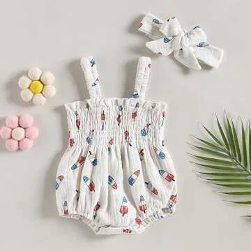 Amnnchya Baby Girl 4th of July Outfit Ice Cream Sleeveless Fourth of July Romper Newborn Independence Day Clothes (White,0-3 Months)