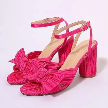 Show more Step into elegance and comfort with the Amoji Women's Block 3.7'' Heeled Sandal, featuring an enchanting bowknot and a pleated design. These heeled sandals are crafted for the modern woman who refuses to compromise on style for comfort. Whether you're attending a wedding, a cocktail party, or simply dressing up for a night out, these shoes promise to elevate your outfit while providing exceptional support. The trendy block heel, measuring 3.7 inches, strikes the perfect balance between height and stability, ensuring you can dance the night away without a care in the world.