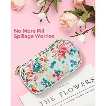 AMOOS Weekly Pill Organizer 2 Times a Day, Travel AM PM Pill Box 7 Day with Lightproof Canvas Bag for Privacy Protection, Large Daily Pill Organizer for Vitamin, Supplement, Fish Oil (Colorful Flower)