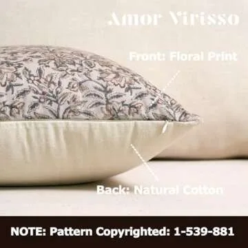 Show more Introducing the Amor Virisso Floral Throw Pillow Covers, a stunning addition to any living space! This exquisite set of two single-sided pillow covers, each measuring 18"x18" (45x45 CM), is designed to elevate your home decor with a touch of vintage charm. Crafted from high-quality cotton, these pillow covers are not only comfortable and breathable but also durable enough to keep your space looking fresh and vibrant for years to come.