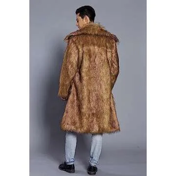 Amore Bridal Mens Faux Fur Coat Long Sleeve Jacket Warm Furry Overcoat Outwear Brown AM-M