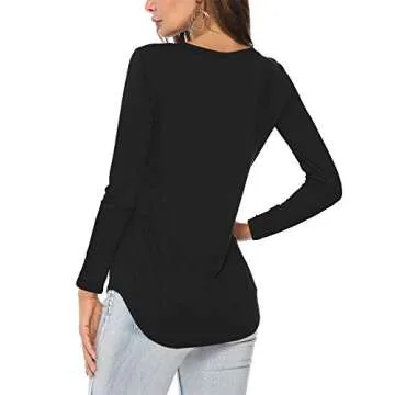 Amoretu Long Sleeve T Shirts Plain V Neck Tee Tops Blouses for Women(Black,L)