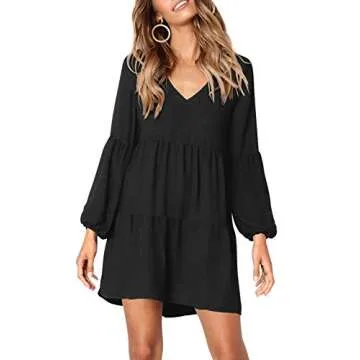 Amoretu Women's Cute V-Neck Lantern Sleeve Loose Tunic Dress - Stylish and Comfortable