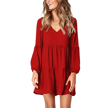 Amoretu Womens Long Sleeve Dresses Engagement V Neck Tunic Dress, Spring, Summer, 2025 (Red, L)