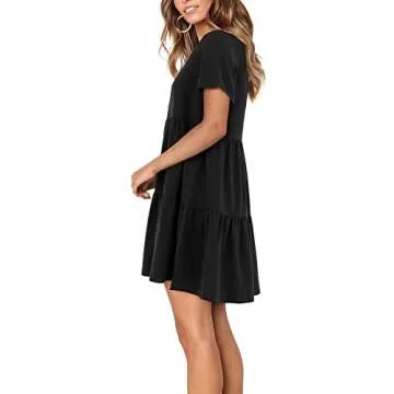 Amoretu Womens Short Sleeve V Neck Tunic Shift Dress Casual Funeral Dresses, Spring, Summer, 2025 (Black, M)