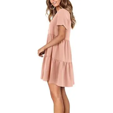 Discover the ultimate blend of style and comfort with the Amoretu Women's Tunic Dress. This casual short sleeve dress features a stunning **deep v neckline** complemented by **lantern short sleeves**, embodying a strikingly sexy yet elegant silhouette. Crafted for today’s fashion-forward women, this dress is perfect for making a statement whether you are out for brunch or heading to an evening party. The pleated loose swing design flows beautifully, offering a flattering look for various...