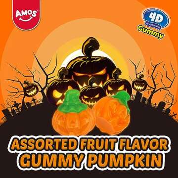 Show moreGet ready to add a touch of festive cheer to your Halloween celebrations with the Amos Halloween Pumpkin Candies. Each 8.47oz pack is bursting with 30 individually wrapped 3D pumpkin-shaped gummies, making them the perfect treat for trick-or-treating, parties, and casual snacking. Crafted with an eye for detail, these lifelike gummy pumpkins mimic the charm of real pumpkins while delivering an irresistible taste that will delight both kids and adults alike.
