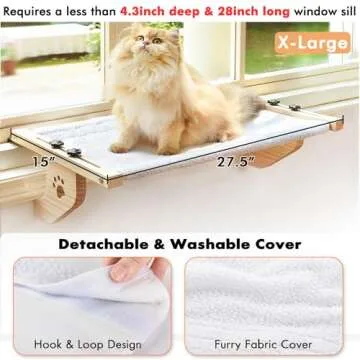 AMOSIJOY Cat Sill Window Perch Sturdy Cat Hammock Window Seat with Wood & Metal Frame for Large Cats, Easy to Adjust Cat Bed for Windowsill, Bedside, Drawer and Cabinet