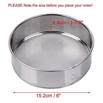 Show more Introducing the **AMPSEVEN Flour Sifter for Baking**, a compact yet mighty baking companion that ensures your flour is light, airy, and free from lumps. Measuring at a convenient **6 inches in diameter and 1-7/8 inches deep**, this stainless steel sieve features a **40 mesh design** that is finely crafted to sift even the **finer flours and ingredients**. Ideal for both professionals and home bakers alike, this small but sturdy tool stands out not just for its functionality but also for its durable construction. The **304 stainless steel** ensures longevity and a great performance, making it a valuable addition to your kitchen arsenal.