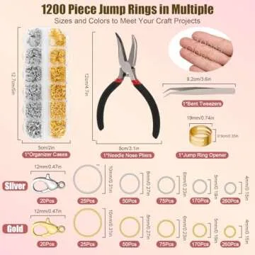Show more Unleash your creativity with the Amrules Jump Rings and Jewelry Making Kit, a comprehensive jewelry-making toolbox designed for both beginners and seasoned crafters. This incredible set includes a generous supply of 1200 jump rings in various sizes—4 mm, 5 mm, 6 mm, 7 mm, and 8 mm—perfectly catering to all your crafting needs. Whether you want to make elegant necklaces, stylish bracelets, or charming earrings, this kit has got you covered.