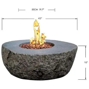 AMS Fireplace | Elementi | Round Gas Fire Pit Table for Outside Patio | Cover and Lava Rocks Included | Free Bio-Ethanol Tabletop (Fuel: Natural Gas, Boulder)