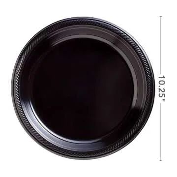 Show moreIntroducing the Amscan Black Big Party Pack Round Plastic Plates—the ultimate solution to elevate your dining experience at any event. These stunning jet black plates boast an eye-catching design, effortlessly enhancing your table settings, and making them a centerpiece of your party supplies. Measuring 10.25 inches in diameter, these round plates are not only stylish but also large enough to accommodate generous portions for all your guests. Made from high-quality, durable plastic, these plates can handle everything from appetizers to full meals without the risk of bending or breaking. Cleanup is a breeze, allowing you to focus on celebrating rather than worrying about messy dishes.