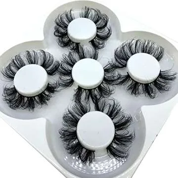 AMSDCN New 5 Pairs 25mm 3D False Eyelashes Thick Dramatic Wispies Fluffy Eyelash Extension Makeup Volume Handmade Faux Mink Lashes (854A)