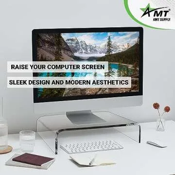 AMT Acrylic Laptop Monitor Stand & Computer Riser with Cat Keyboard Protector, Space-Saving Design, Extra Storage, Clear Shelf - Ideal for Monitors, Laptops, Printers, Desktop Decor