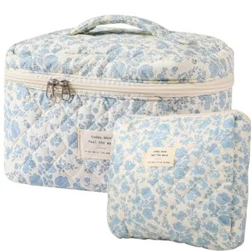 Show moreIntroducing the AMULOKRU Large Makeup Bag, a stunning blend of functionality and style designed for modern women and girls on the go! This beautiful set features a unique floral pattern that radiates charm, ensuring you not only carry your essentials but do so with flair. Crafted from high-quality cotton, this quilted makeup bag offers a soft, skin-friendly touch and is perfectly suited for both everyday use and those special occasions where you want to showcase your personality. With its practical dimensions – big size: 9.05 x 5.9 x 5.51 inches and medium size: 9.05 x 2.36 x 7.87 inches – these bags provide ample space for all your cosmetics and skincare products without compromising on style.