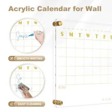 AMUSIGHT Small Acrylic Calendar for Wall, 12" X 14" Golden Clear Acrylic Wall Calendar, Clear Wet & Dry Erase Calendar Hanging Frameless Weekly Planner for Office, Home or School, 2 Markers