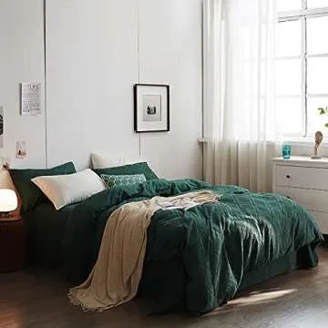 Show moreTransform your bedroom into a serene sanctuary with the AMWAN Emerald Green Duvet Cover. Made from 100% premium cotton, this luxurious waffle weave duvet cover not only enhances the aesthetic appeal of your space with its rich dark green hue, but it also ensures unmatched comfort for a restful night's sleep. Designed to accommodate standard king-size mattresses, it comes as a complete set, including a duvet cover and two matching pillowcases, providing an elegant touch to your bedding collection. This duvet cover is breathable, gentle on the skin, and its textured weave adds a subtle sophistication that delights the senses.