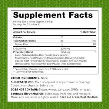 Amy Myers MD Leaky Gut Revive Powder for Leaky Gut Repair -L Glutamine, Slippery Elm -Supports Constipation, Diarrhea, Bloating, Heartburn, SIBO -Licorice & Marshmallow Root - Unflavoured-6.30 Oz