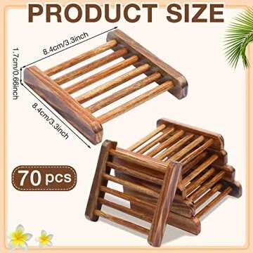 Amyhill 70 Pcs Bamboo Wood Soap Dish Bulk Bathroom Wooden Soap Holder Savers for Bar Self Draining Dishes Hand Craft Tray, 3.3 x 3.3 x 0.67 Inch (Charcoal Color)