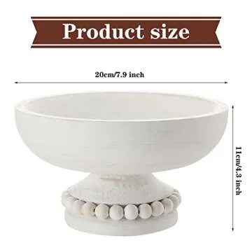 Amyhill Distressed Beaded Wood Pedestal Bowl Decorative Wooden Beaded Bowl Wood Pedestal Bowl Serving Bowl for Farmhouse Kitchen Decor(White)