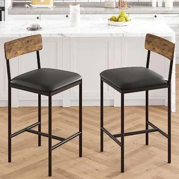 Amyove Bar Stools Set of 2, Upholstered Bar Chairs with Back, 25.5 Inches Kitchen Bar Stools with Footrest, Thick Cushion, Counter Height Barstools for Island, Counter Bar, Easy Assembly, Rustic Brown