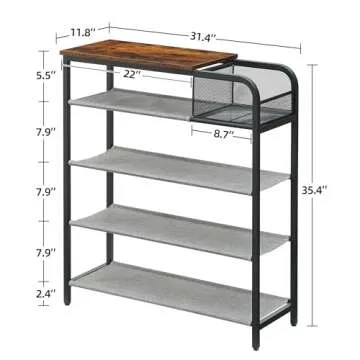 This shoe rack stands out with its robust features. With each shelf measuring approximately 7.9 inches in height, it provides ample room for various types of footwear, from sneakers to boots. The sturdy steel frame, reinforced with thickened iron pipes, ensures this shoe organizer is built to last, giving you the stability and durability you require in everyday use. Plus, the built-in mesh storage basket is an excellent touch for stashing away keys, wallets, or other necessities that often find themselves misplaced, helping you keep your hands free when you're on the move.
