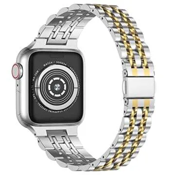 Show moreElevate your style with the AmzAokay Compatible Apple Watch Bands. Designed for versatility and comfort, these stainless steel bands are perfect for Apple Watch owners across various models, including Series Ultra, SE, and all earlier versions from Series 1 to Series 10. Crafted with premium stainless steel metal, each band exudes a sense of luxury that seamlessly integrates with your watch. Available in four eye-catching colors—Silver, Rose Gold, Gold, and Black—these bands add a personalized touch, ensuring your watch looks fashionable and elegant, whether you’re at a business meeting or a casual outing.