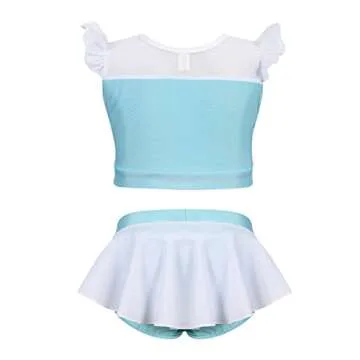 AmzBarley Girls Princess Swimsuit 2 Pieces Swimwear Bathing Suit Little Kids Beach Sport Pool Party Hight Waist Bikini Set Ruffle Tankini Swimming Set Light Blue-98 Size 8(7-8Years)
