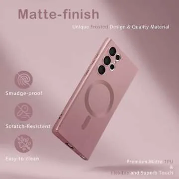 Introducing the Amzfield Magnetic Case for Samsung Galaxy S22 Ultra, an exquisite fusion of style, function, and protection. Designed specifically for the Samsung Galaxy S22 Ultra, this case encompasses all your needs in one. With its vibrant pink hue and a matte finish, it brings a touch of elegance while providing robust durability. The case features N52 premium magnets ensuring a reliable connection for all your MagSafe accessories, facilitating hassle-free wireless charging....