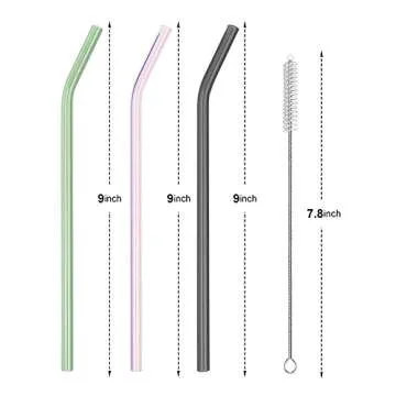 AMZSOCKETS Reusable Glass Straws - 9" L x 8 mm W - Smoothie Drinking Straws for Smoothie, Milkshakes, Pack of 6 with 1 Cleaning Brush (mix1)