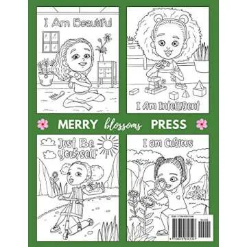 Show more Discover the perfect blend of creativity and empowerment with this exceptional coloring book designed especially for African-American girls. Each page features positive affirmations paired with beautifully drawn images that encourage self-love and confidence. The sturdy pages are perfect for any coloring medium, ensuring hours of enjoyment without the worry of bleed-through, thanks to a black-and-white backing on each side.