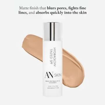 Show more Introducing the AN Skin - HydraGlow Tinted Sunscreen for Face with SPF 50, your ultimate solution for sun protection and skincare in one! This tinted moisturizer is not just a typical sunscreen; it features a powerful SPF 50 formula designed to shield your skin from harmful UVA and UVB rays, keeping those sunspots and premature aging at bay. The smooth, lightweight mousse texture ensures effortless application, blending seamlessly into your skin tone and enhancing your natural beauty. Say goodbye to greasy, heavy sunscreens and hello to a matte finish that feels as great as it looks!