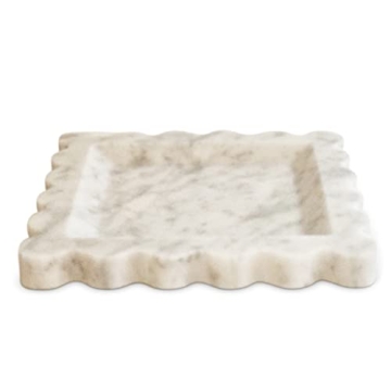 Anacua House Scalloped Edge Marble Tray - White Carrera Marble