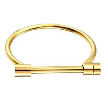 ANBALA Stylish Titanium Steel D Shape Bar Screw and Shackle Cuff Bangle Bracelet for Unisex, Gold,Flat Head Screw