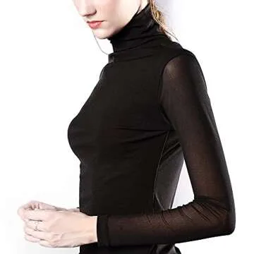Anbenser Women's Turtleneck Top Long Sleeve Slim Fit Shirts Mesh Sheer See Through Casual Blouse (Black,XXX-Large)