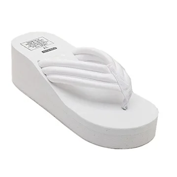ANBOVER Women's High Wedge Beach Summer Thong Platform Slippers, White, 8US/39EU