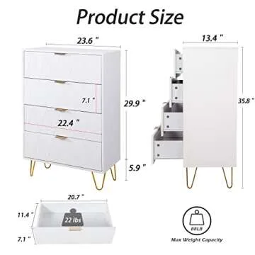 Anbuy 4 Drawer Dresser, Drawer Chest, Tall Storage Dresser Cabinet Organizer Unit with Metal Legs for Bedroom, Living Room, Closet (White/4 Drawer)